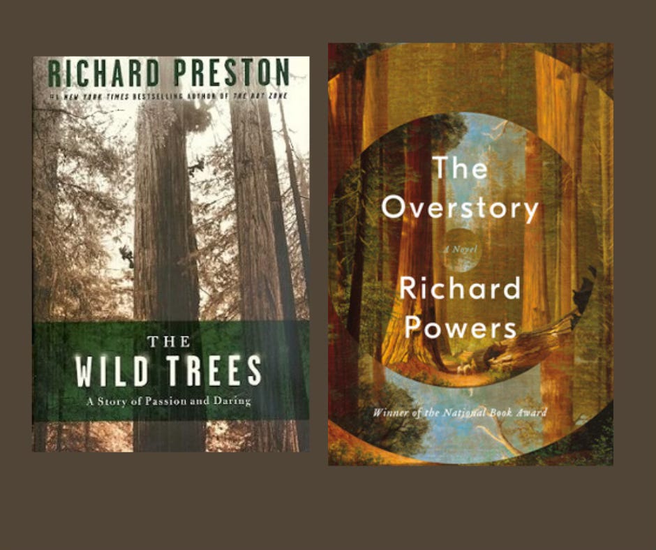 Richard Powers’ The Overstory centers on the diversity, talents, and vulnerabilities of trees. He too is in awe of sequoias: The redwoods knock all words out of them. Nick drives in silence….It’s not the size that throws him, or not just the size. It’s the grooved, Doric perfection of the red-brown columns, shooting upward from the shoulder-high ferns and moss-swarmed floor—straight up, with no taper, like a russet, leathery apotheosis. And when the columns do start to crown, it happens so high, so removed from the pillars’ base, that it might as well be a second world up there, up nearer eternity.